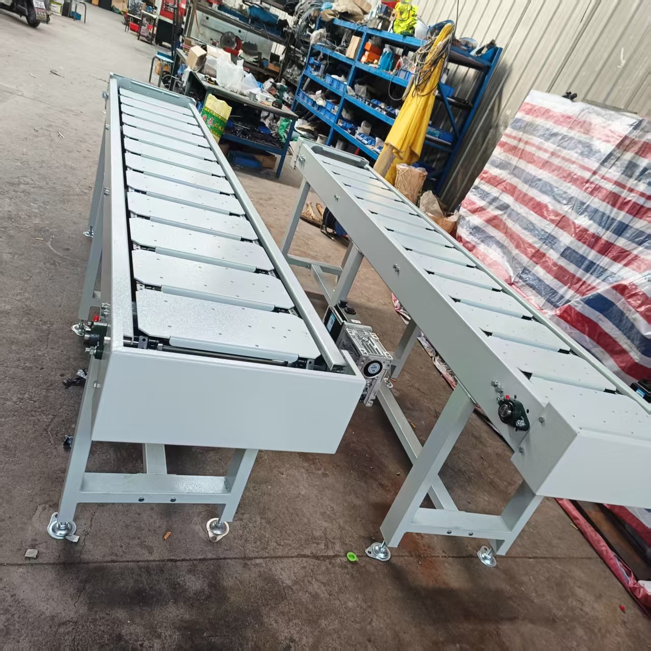 7、設(shè)備布局靈活??梢栽谝粭l輸送線上完成水平、傾斜和轉(zhuǎn)彎輸送;